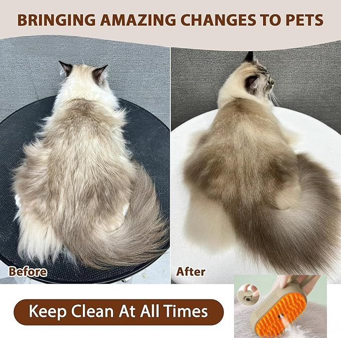 Keep your pets clean, comfortable, and well-groomed with this multi-functional pet grooming brush. Designed for cats and dogs of all hair types, it combines brushing, massaging, steam-cleaning, and deshedding in one easy-to-use tool. Perfect for maintaining a healthy, shiny coat while keeping your home fur-free, ideal for sensitive pets, and chemical-free grooming.